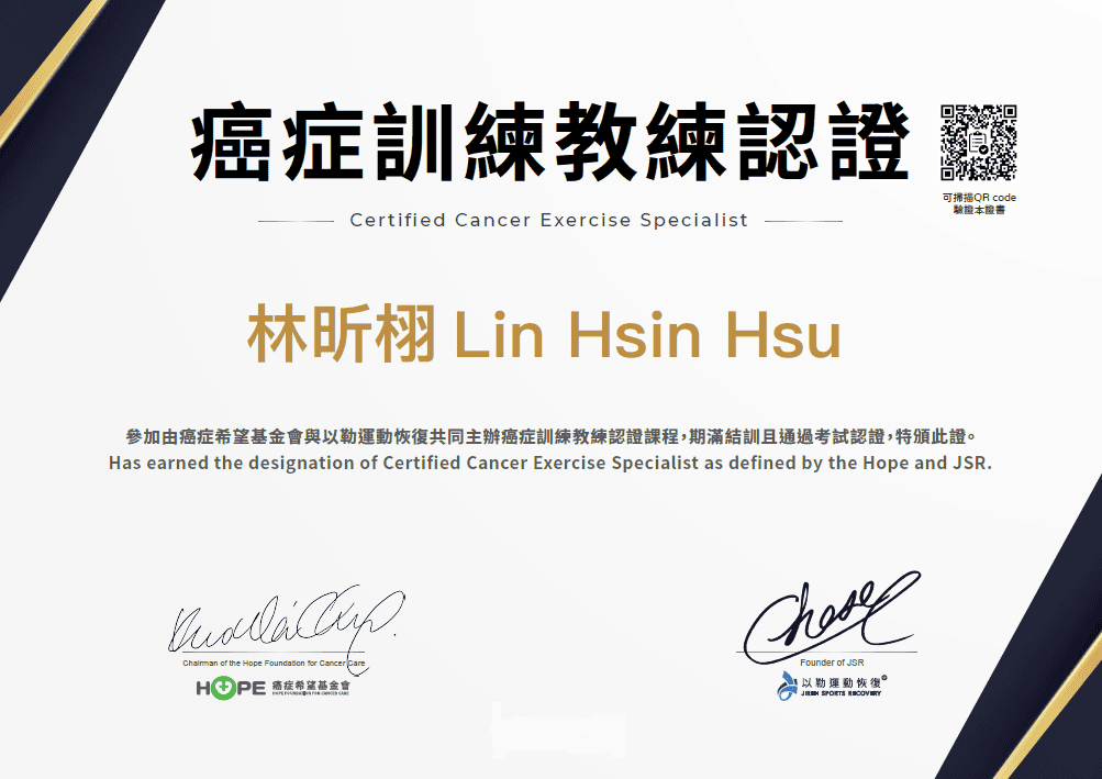 | ACSM-ACS Cancer Exercise Specialist | 美國運動醫學會 (ACSM) + 美國癌症協會 (ACS) | – 內容基礎 – 官方資源較少 | 完課可獲證明與學分, 但非正式癌症訓練認證 |