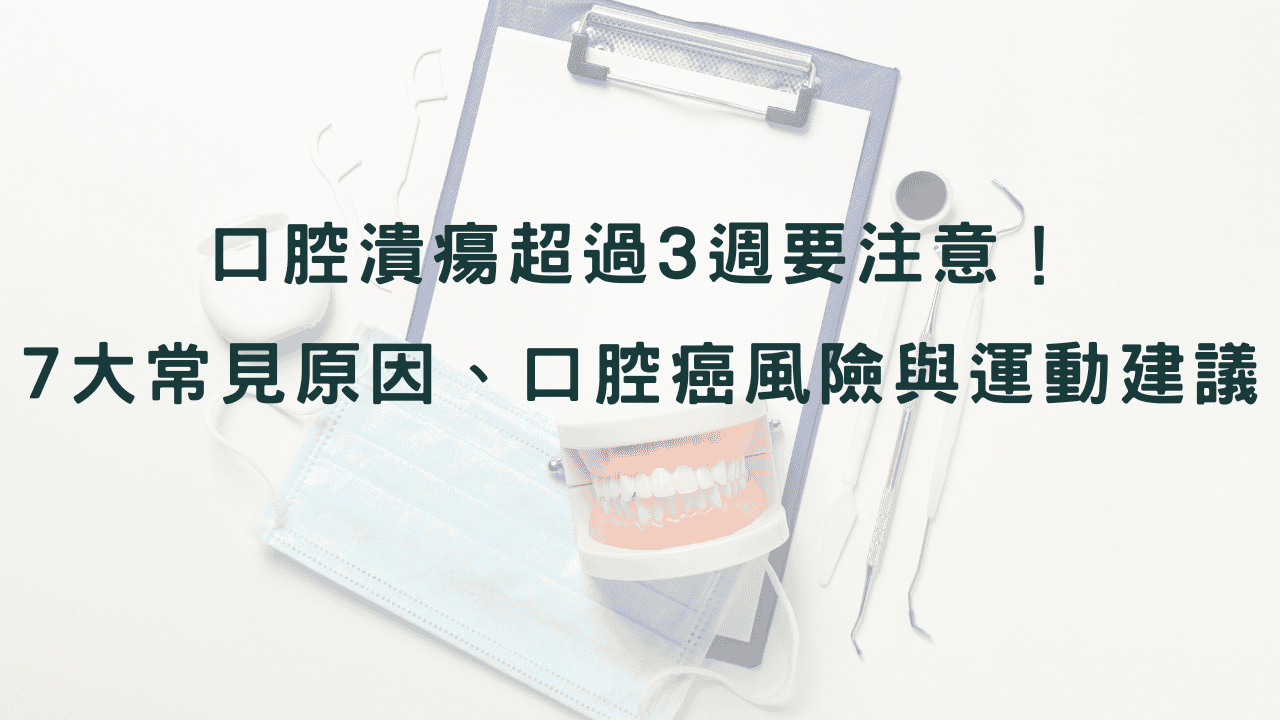 口腔潰瘍的原因、口腔癌的風險因子、自我檢查、預防與篩檢,以及針對口腔癌患者的運動注意事項做詳細說明。