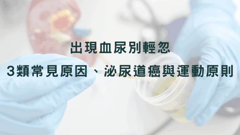 本文將介紹血尿的 3 大常見原因,以及血尿與泌尿道癌的關聯。此外,也整理了泌尿道癌患者與高風險族群在運動時的注意事項與原則,幫助讀者了解如何安全運動、維持身體功能,同時留意健康警訊。